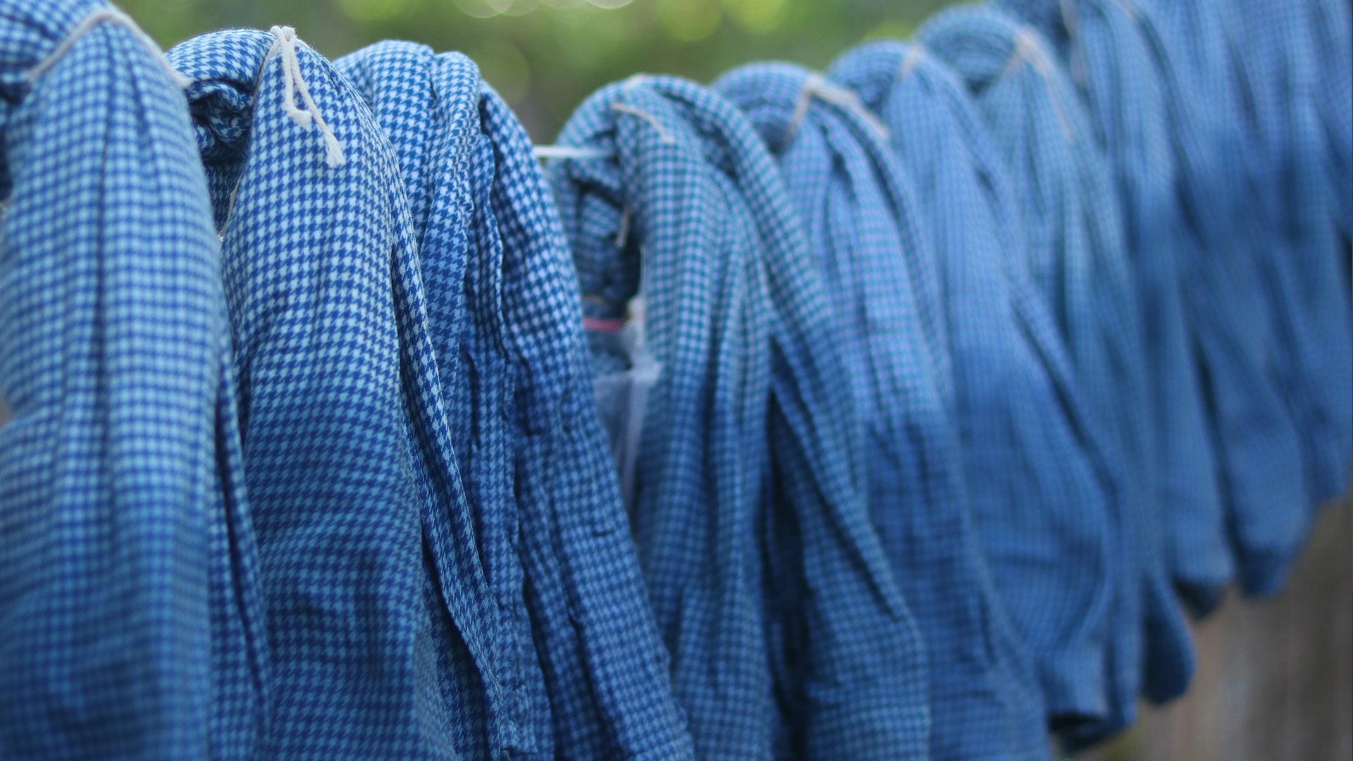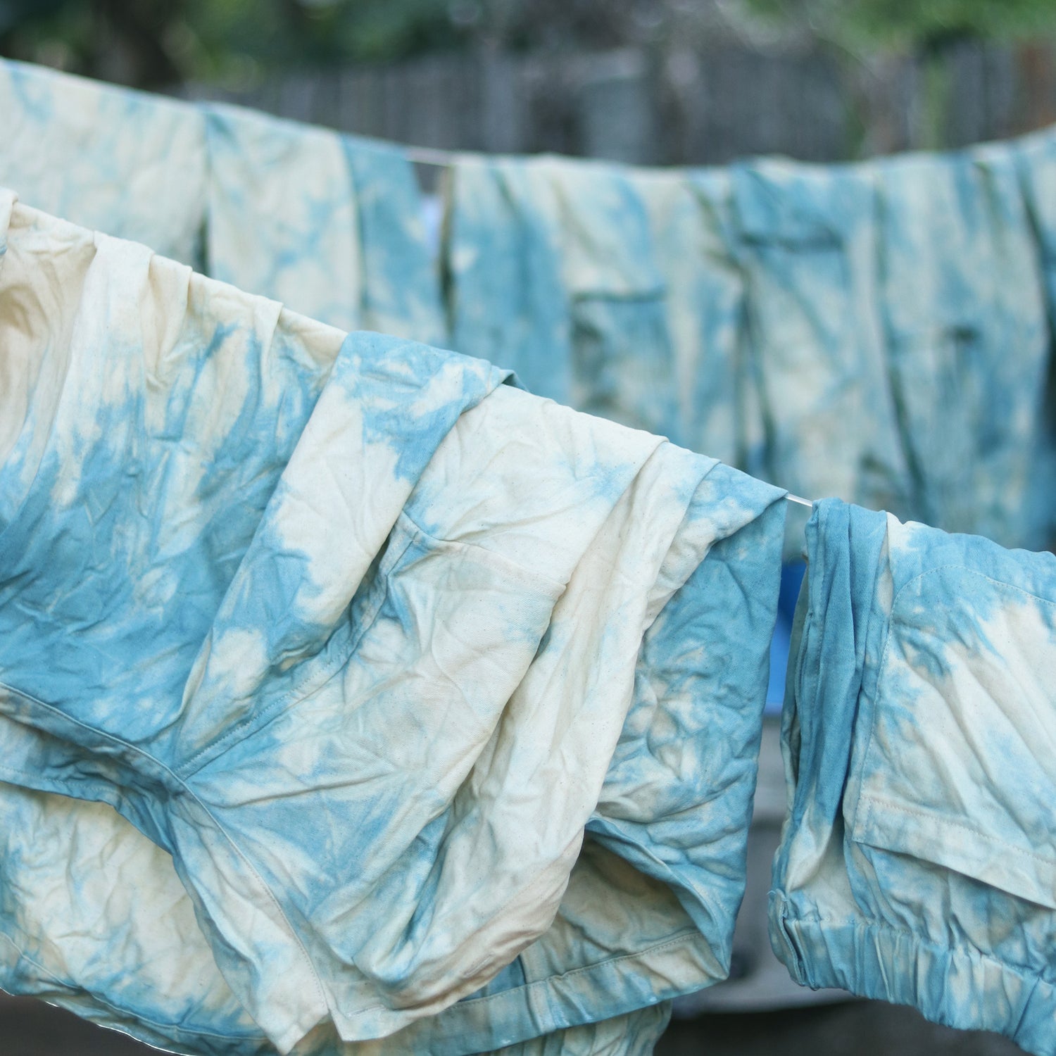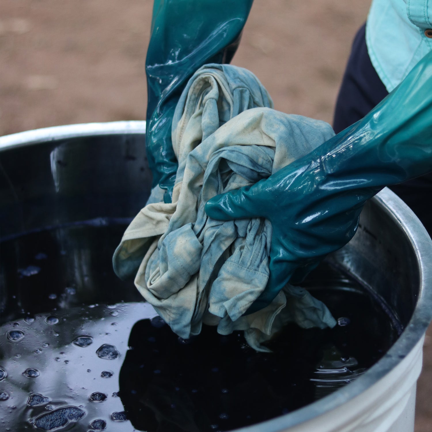 We worked with indigo, along with marigold dye to create a stunning blue and algae green for our first drop.